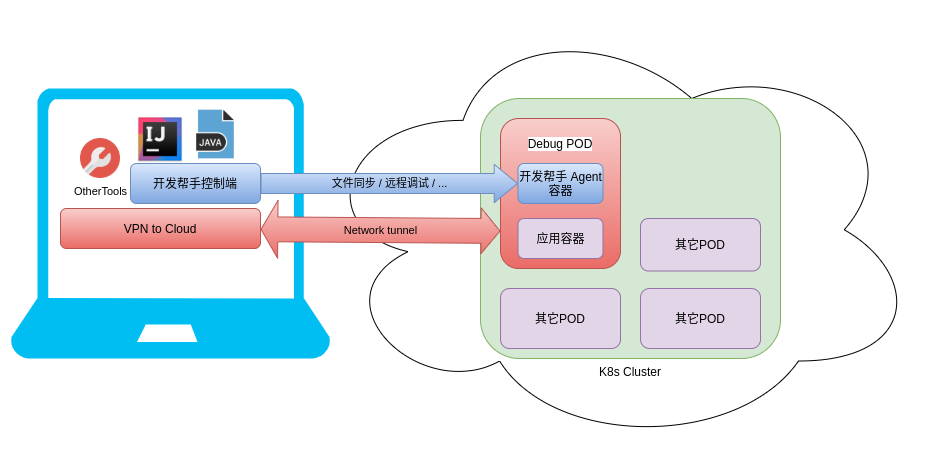 - Debug K8s Pod 中运行的应用,本地 IDE 远程 debug。